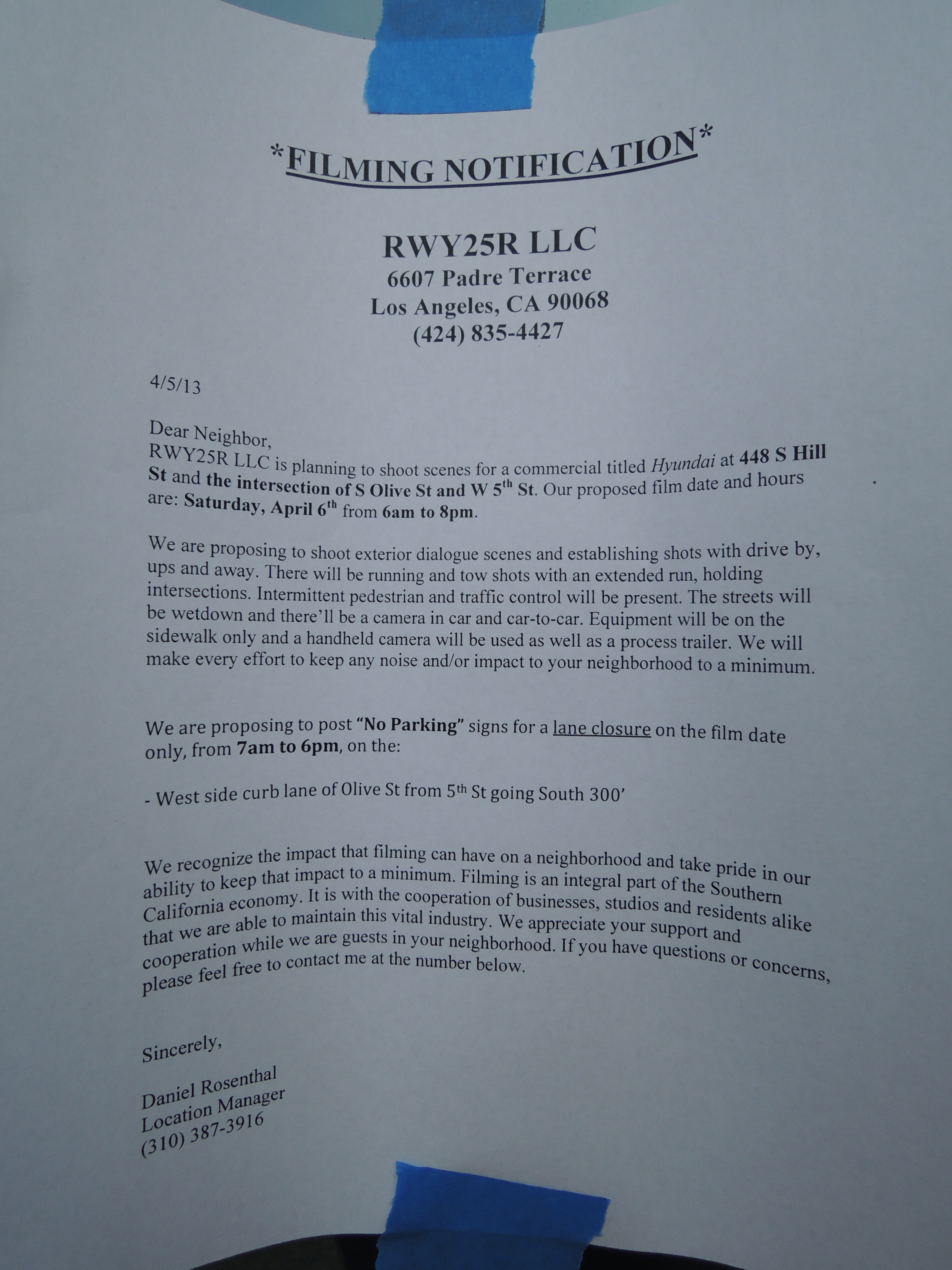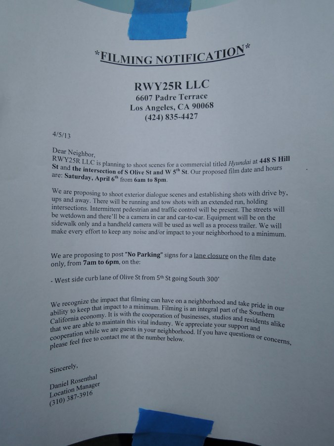 Filming notices are frequently seen on L.A. landmarks.