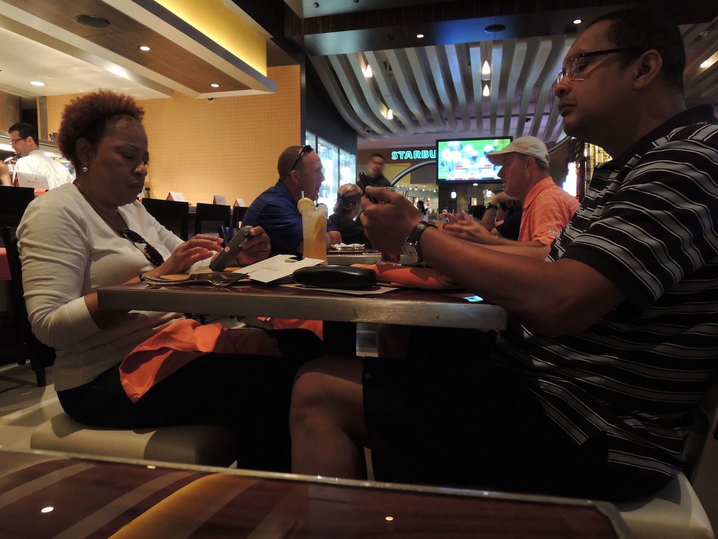To piggyback on Paleo Retiree’s recent post, I caught this couple at the table next to me a few months ago.