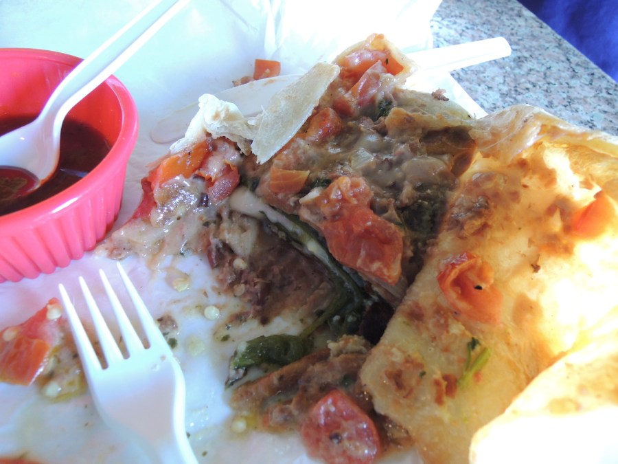 There’s no rice to bind the ingredients together, so it’s easy for the burrito to lose its structural integrity. Minor quibble. Easy to eat with a knife and fork.