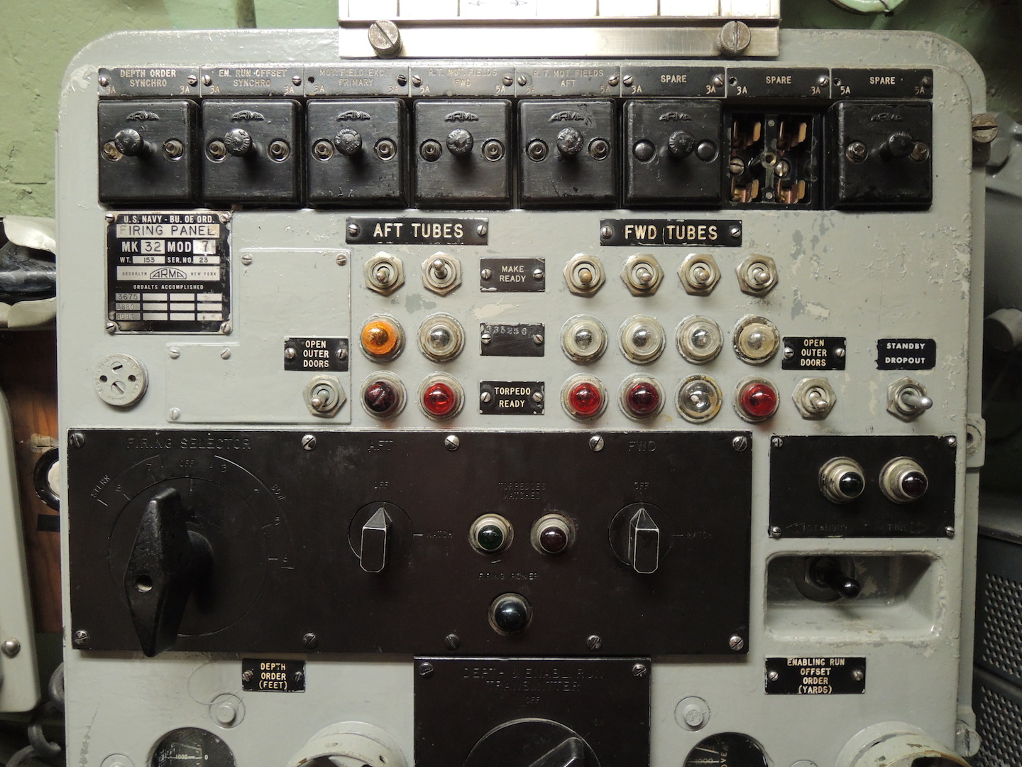 The torpedo and missile firing panel. That recessed black toggle switch in the lower right is what launched the nukes.