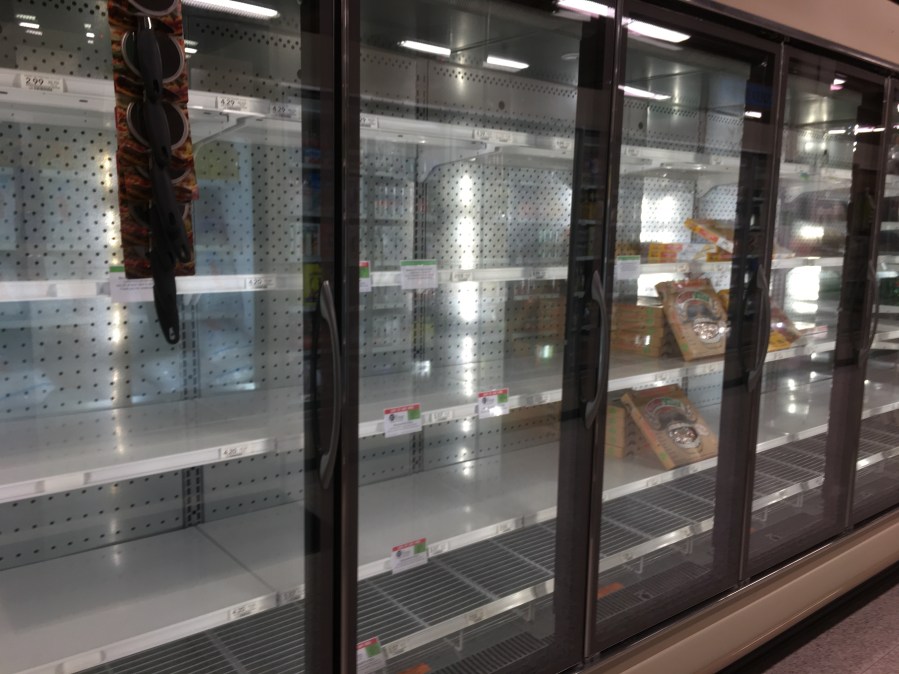 Like every other grocery store, the frozen food had been ransacked.
