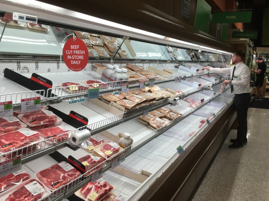 Not much meat on the shelves, but an employee arrived to restock it after I took this picture.